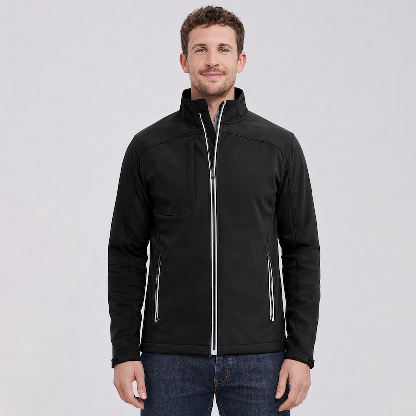 Innovativ softshell-jakke for herrer. Jakken har perfekt passform og gir en uslåelig motstand mot vind og vann. Materialet har et avansert system som gjør at jakken puster. Leveres enkeltpakket i plastpose. Jakken er helt uten PFC. Finnes også som damemodell.