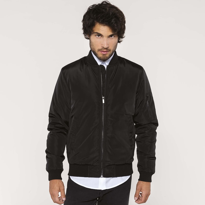 Bomberjakke for menn. Jakken har alle de klassiske attributtene med to sidelommer, en armlomme og en innerlomme. Bestill bomberjakker med trykk hos Axon Profil! Finnes også som damemodell.