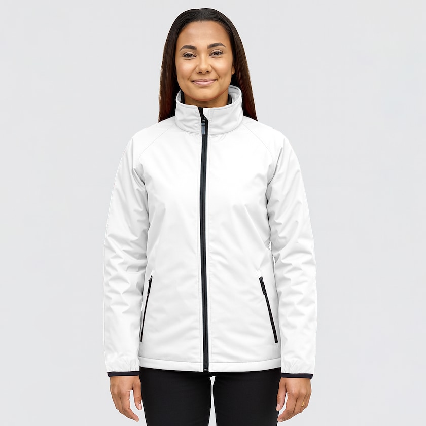 Lettvektsjakke med hette til dame. Stoffet tåler fuktighet. Sidelommene har glidelås og jakken har innerlomme. Finnes også som herremodell.