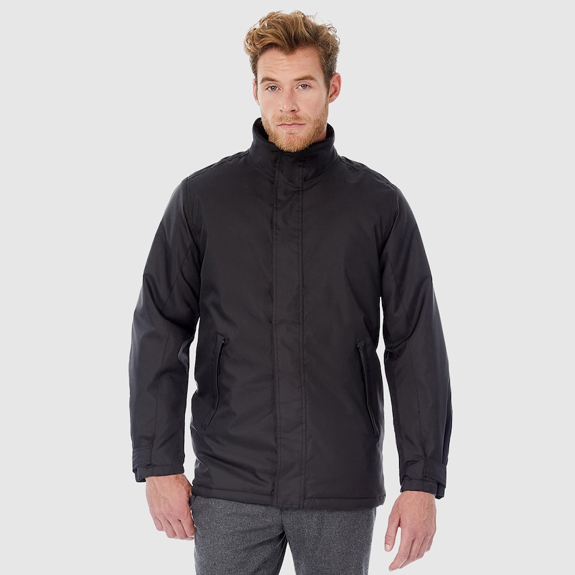 Fôret vinterjakke til herre. Kan kjøpes med trykk eller broderi. Jakken er utstyrt med en skjult hette i kragen. Foran har jakken to lommer med glidelås. Også innerlommen er utstyrt med glidelås. Ermene er ergonomisk formet for å hjelpe med rørligheten. Ermene er regulerebare. Bestill parkasjakker med trykk hos Axon Profil! Finnes også som damemodell.