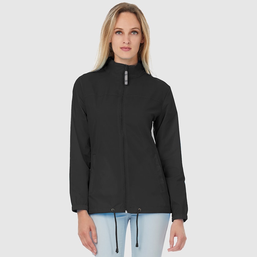 Billig damejakke med trykk fra B&C. En ordentlig kampanjejakke. Tidløst design med glidelås og hette i kragen som kan gjemmes bort. Justerbar både i hetten og midjen. Jakken er uten for. Finnes også som herremodell.