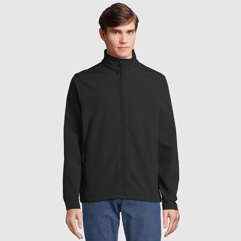 Sporty softshelljakke til herre. Det er lommer med glidelåslukking på sidene. Stoffet består av to lag som er laget av 96% polyester og 4% elastan. Fôret er laget av 100% polyester.
