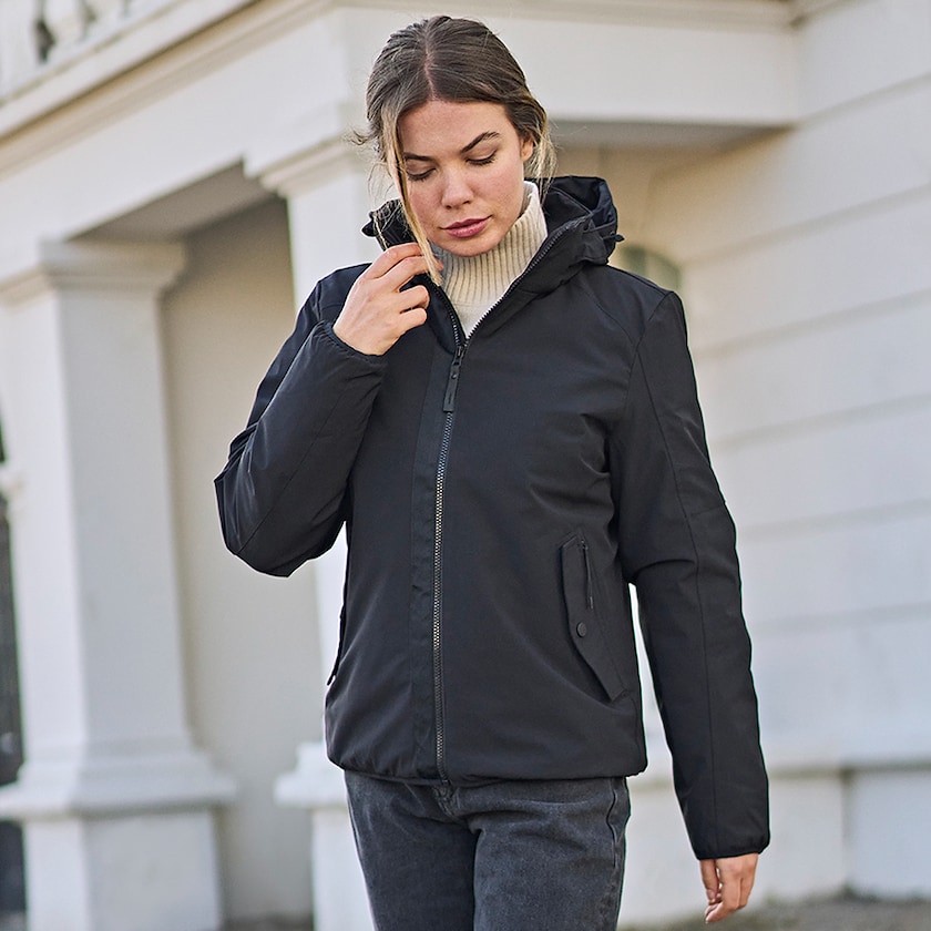 Damejakke med vannavvisende egenskaper. Jakken har avtakbar hette og doble lommer foran. Materialet er slitesterkt og gir utmerket varme. Finnes også som herremodell.