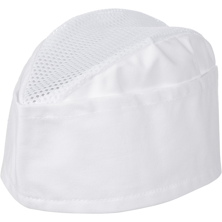 Bakerhatt i klassisk modell. Hatten er laget av bomull, foruten nettet på toppen som er av polyester. De hvite luen tåler maskinvask i opptil 60 grader og den svarte maskinvask opp til 40 grader.