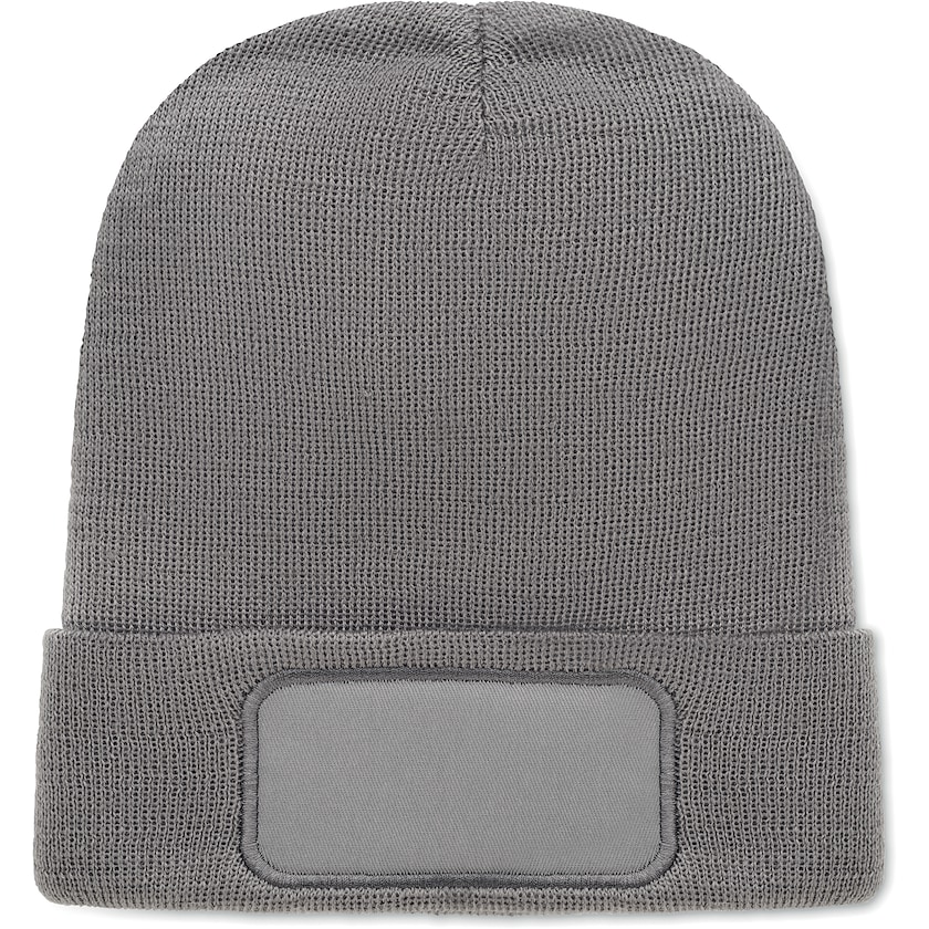 Strikkelue med etikett med plass til trykk. Luen er laget av RPET, dvs. resirkulerte PET-flasker. Unisexmodell.