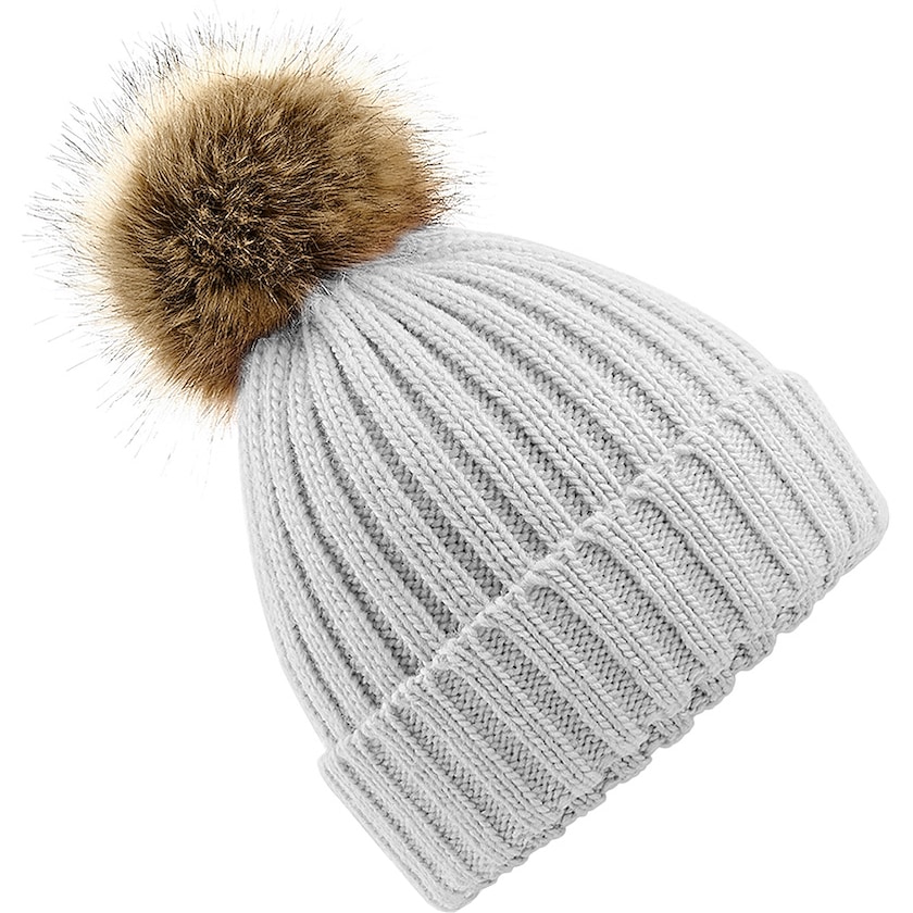 Flettestrikket lue med stor dusk i fuskepels. Luen er en unisexmodell, og er laget av luksuriøs, myk akryl. Dusken er avtakbar i tilfelle luen skal vaskes.