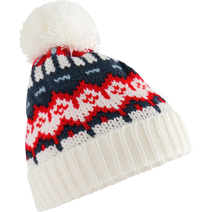 Strikkelue med klassisk mønster. Luen har et fleecefôr som gjør den ekstra varm og behagelig. Produsert av 56% GRS-sertifisert polyester og 44% akryl.