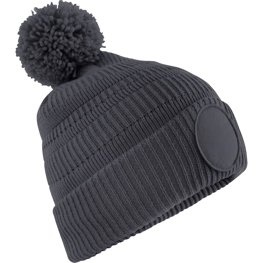 Lue med rund etikett med plass til trykket. Luen har et stoff med et mønster i stilig design og er produsert av 100% GRS-sertifisert polyester.