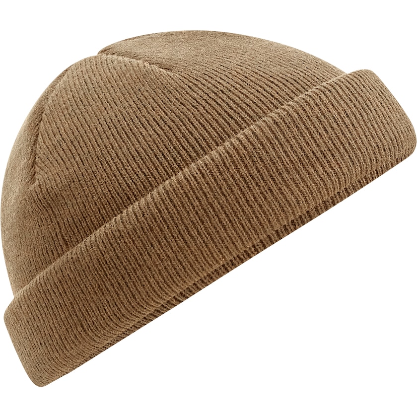 Ribbestrikket lue av resirkulert polyester. Luen er en kort modell. Stoffet er produsert av resirkulerte PET-flasker (RPET), og er sertifisert i henhold til Control Union CU811033.