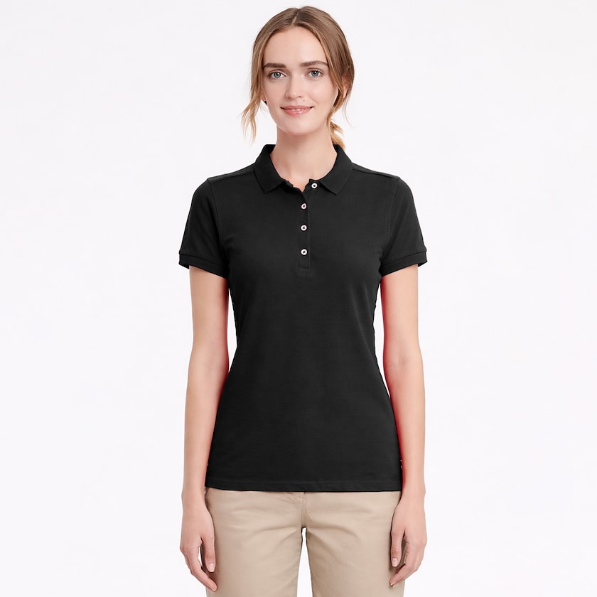 Slim-fit pikétrøye for damer med stretch i stoffet. Stoffet inneholder 5% Lycra som gjør skjorten myk og behagelig. Poloen leveres enkeltpakket i plastpose. Finnes også som herremodell.