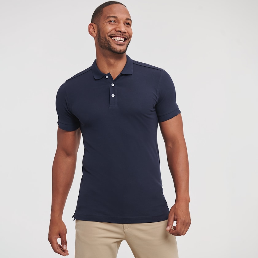 Slim-fit pikétrøye for herrer med stretch i stoffet. Stoffet inneholder 5% Lycra som gjør skjorten mykt og behagelig. Poloen leveres enkeltpakket i plastpose. Finnes også som damemodell.