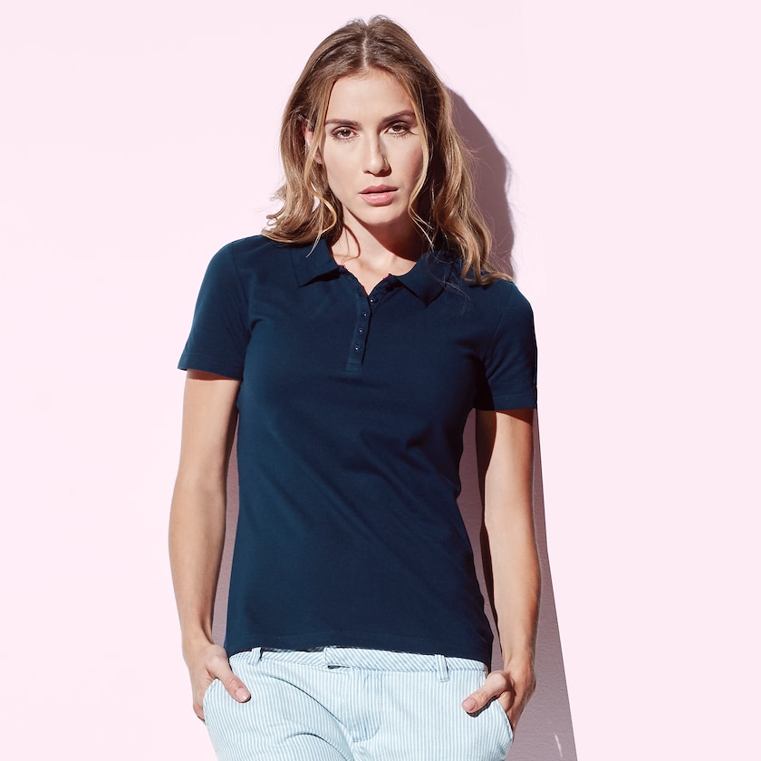 Moderiktig pikétrøye for damer med fem knapper i halsen. Stedman Hanna Polo, er laget av 100% bomull og er en polo med moderne design. Leveres og enkeltpakket i plastpose. Finnes også som herremodell.