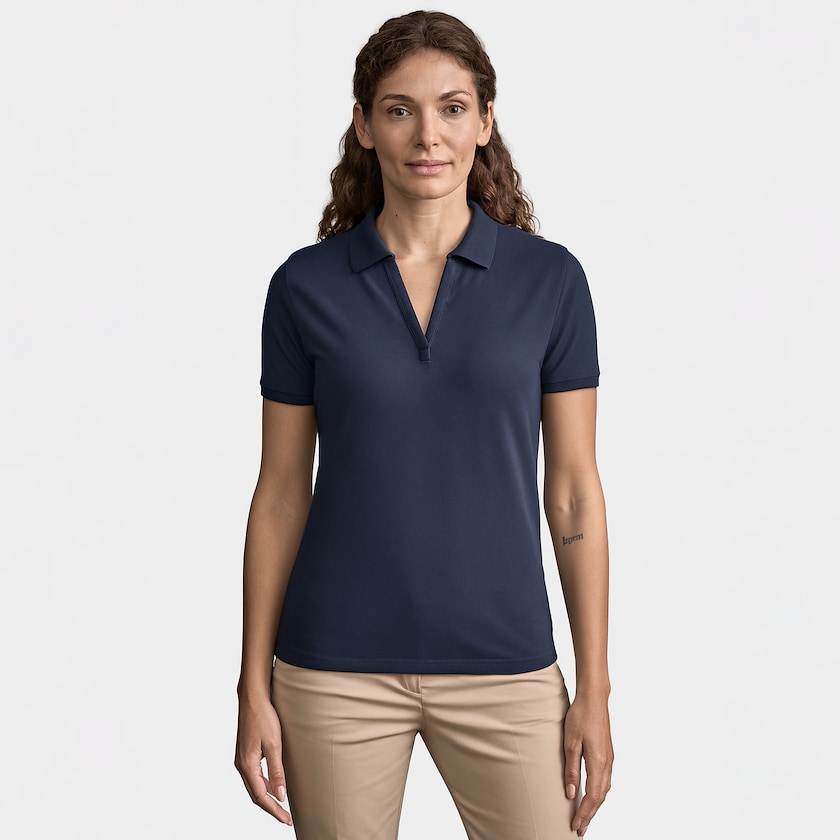 Polo med elegant design til dame. Stoffet er laget av 96 % økologisk bomull og 5 % elastan, som gir perfekt passform og komfort.