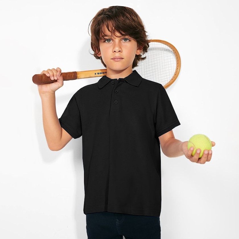 Rimelig polo i barnestørrelse laget av bomull og med superrask levering. Genseren er laget av et bomullsstoff på 200 gram og har tre knapper i halsen.