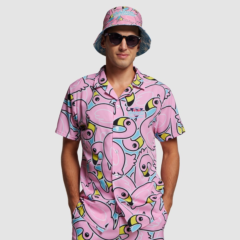 Hawaiiskjorte som kjøpes med eget stoff. Perfekt til sommerfesten! Hele stoffet trykkes etter dine egne ønsker og du velger selv mellom hvite, grå eller svarte knapper. Finnes i størrelser fra XS til 4XL. Minsteantallet per størrelse er 10 stk. Skjorten CMYK-trykkes, noe som gjør at det kan forekomme opptil 15% fargeavvik. Størrelsestoleransen er +/- 2 cm. Du kan få individuelle navnetrykk på skjortene uten ekstra kostnad. Ettersom skjortene spesialproduseres, er leveringstiden lenger enn vanlig.. Finnes også som damemodell.