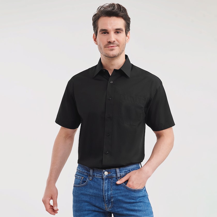 Kortermet skjorte i polyesterblanding for økt slitestyrke. Leveres pakket enkeltvis i plastposer.