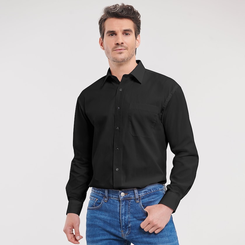 Langermet skjorte i 100% easy-care bomull. Leveres pakket enkeltvis i plastposer.