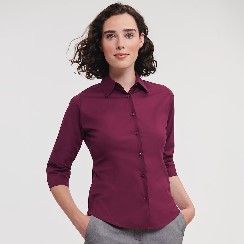 Dameskjorte i passform og 3/4-dels armer. Leveres pakket enkeltvis i plastposer.