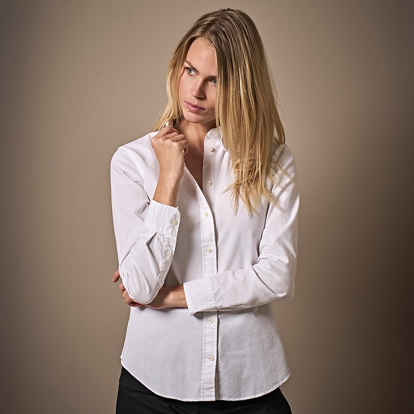 Moderne oxfordskjorte for damer. Skjorten er laget av 100% bomull. Leveres enkeltpakket i plastpose. En t-skjorte til dame til deg som vil ha kvalitet i både passform og materiale! Finnes også som herremodell.