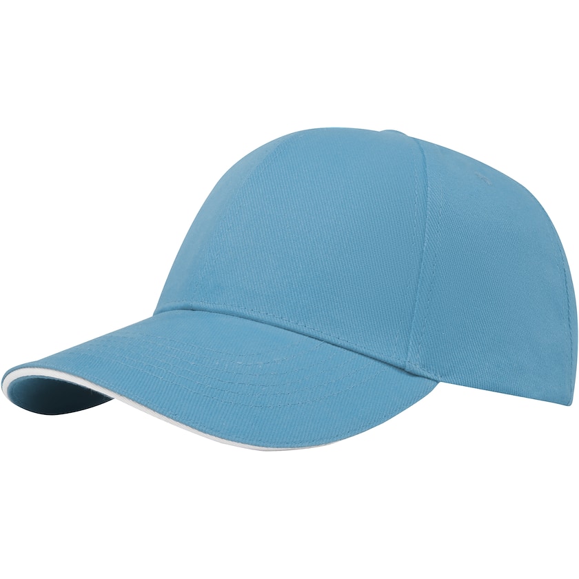 Sporty caps av resirkulert bomull. Capsen har en skjerm kontrastfarge. Reguleres med metallspenne på baksiden. Stoffet er laget av 50% resirkulert bomull og 50% bomull.