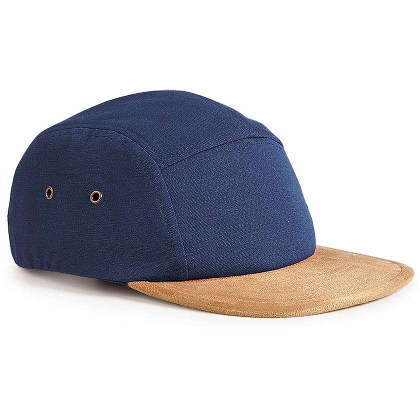 Eksklusiv flatpeak-caps med brem i syntetisk semsket skinn og kunstlærspenne.