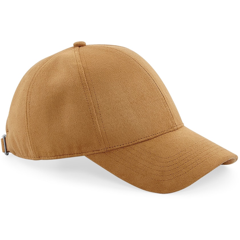 Caps med stoff av kunstig semsket skinn. Bak finnes en sølvfarget metallspenne. En pen caps med et unikt stoff!