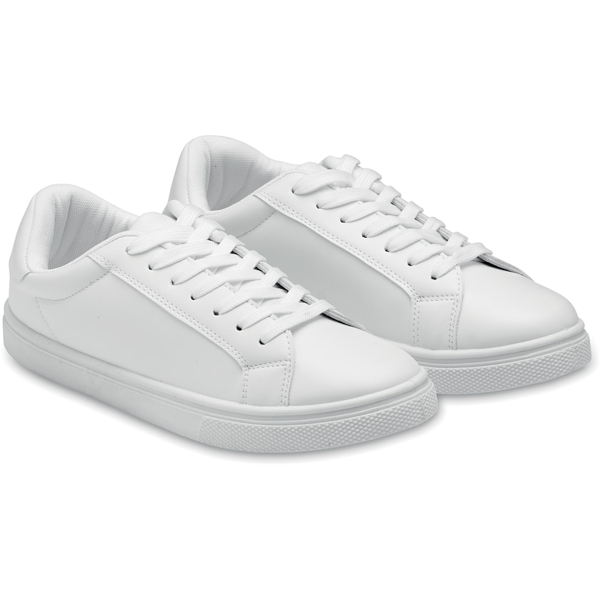 Sneakers med eget trykk. Lag unike sneakers til din bedrift! Callistoga er laget av behagelig kunstskinn med yttersåle av gummi. Lissene er av polyester. Du kan selv velge og blande størrelser. Leveres i en hvit skoeske. Trykkprisen gjenspeiler trykk på en av skoene.