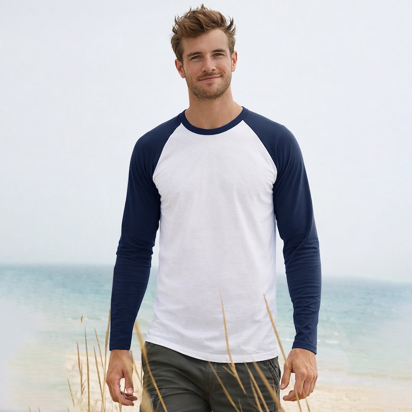 Langermet baseballtrøye fra Fruit of the Loom. Leveres individuelt pakket i plastpose.