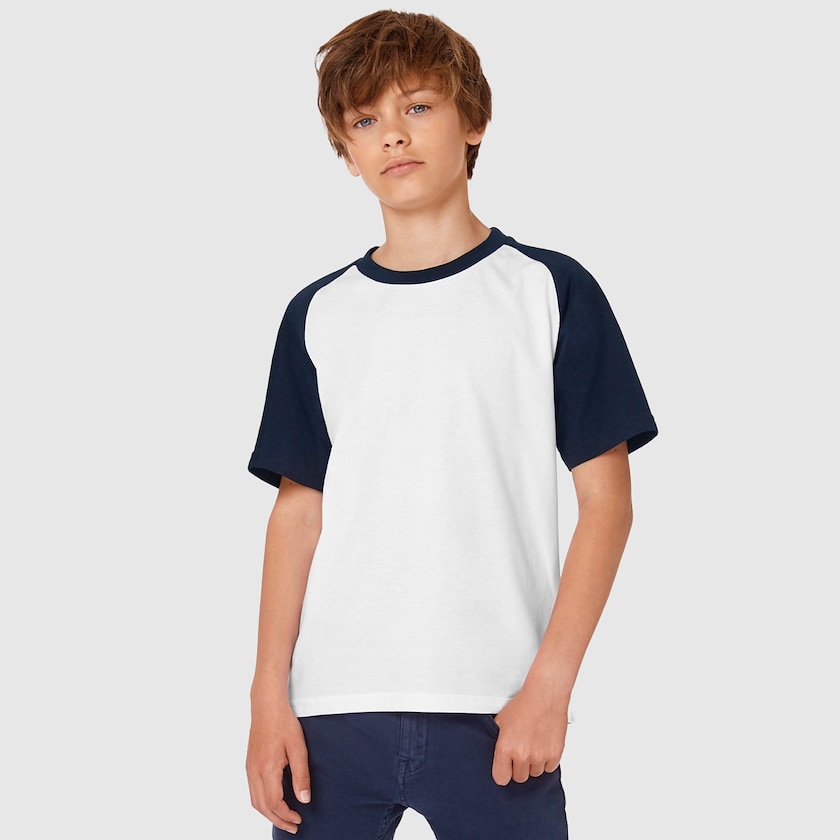 Baseball-T-skjorte for aktive bar i alle aldre. Leveres individuelt pakket i plastpose.