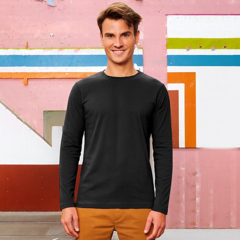 Langermet t-skjorte for menn som er laget av 100% økologisk bomull. Trøyen har et mykt og behagelig stoff. Leveres enkeltpakket i plastpose. Trøyene er laget av 100% økologisk bomull, foruten fargen sporty grey som er laget av 90% økologisk bomull og 10% viskose. Bestill økologiske langermede t-skjorter med trykk hos Axon Profil! Finnes også som damemodell.