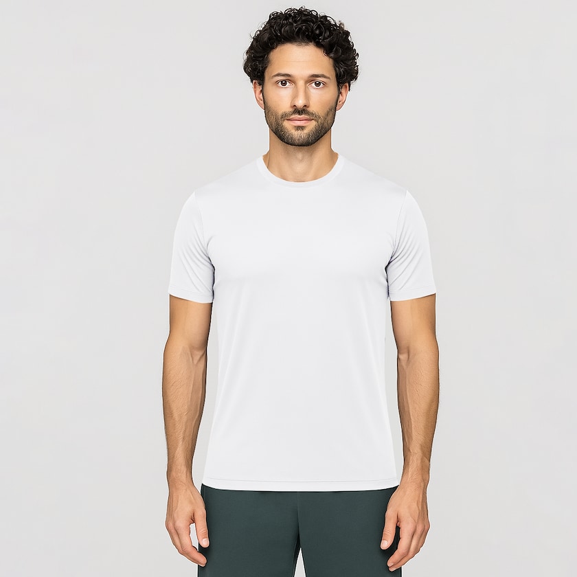 Trenings t-skjorte med et polyesterstoff som kjøler. T-skjorten har rund hals og kroppsnær passform. Takket være det kjølende stoffet holder du en behagelig temperatur selv under intense treningsøkter. Finnes også som damemodell.