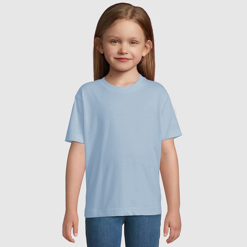 T-skjorte til barn i mange ulike farger. Stoffet er produsert av 100% ÖKO-TEX sertifisert bomull. Størrelsesguide: M=2år (86-94cm), L=4år (96-104cm), XL=6år (106-116cm), 2XL=8år (118-128cm), 3XL=10år (130-140cm), 4XL=12år (142-152cm).