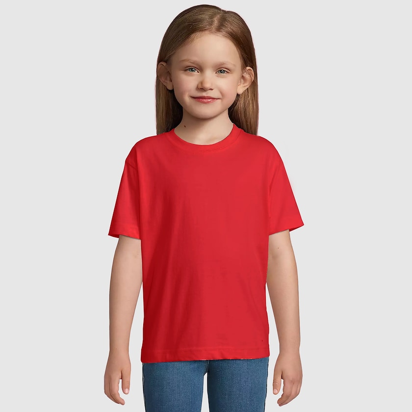T-skjorte til barn i mange ulike farger. Stoffet er produsert av 100% ÖKO-TEX sertifisert bomull. Størrelsesguide: M=2år (86-94cm), L=4år (96-104cm), XL=6år (106-116cm), 2XL=8år (118-128cm), 3XL=10år (130-140cm), 4XL=12år (142-152cm).