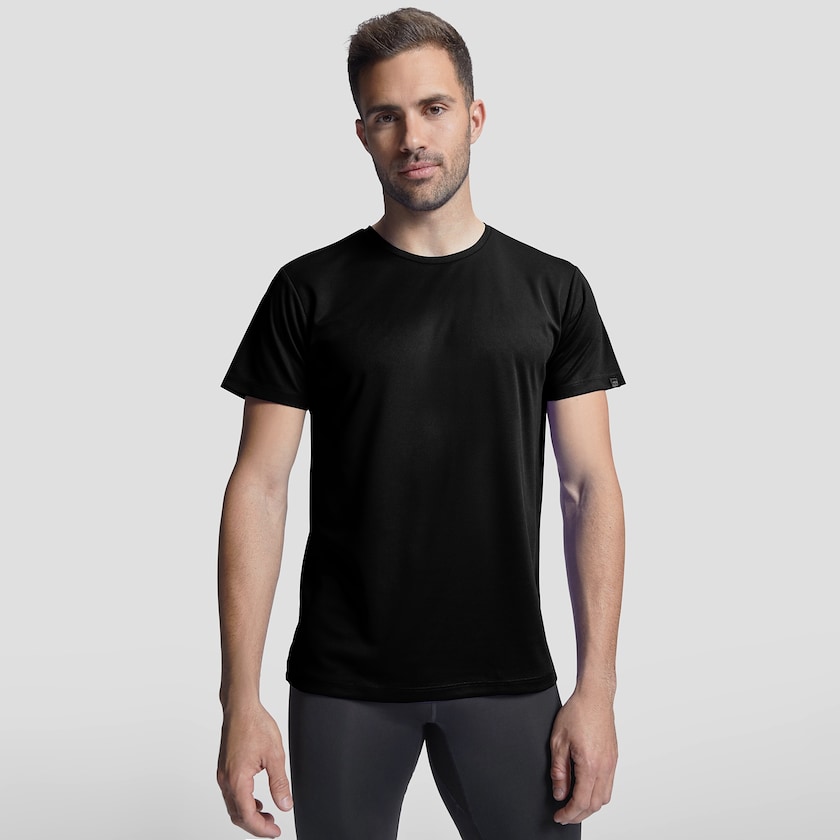 Funksjons-t-skjorte av resirkulert Control-Dry polyester. Perfekt til trening! T-skjorten er laget av 47% resirkulert polyester og 53% vanlig polyester. Størrelsene er ganske små, så ta gjerne en størrelse større enn vanlig. Finnes også som damemodell.