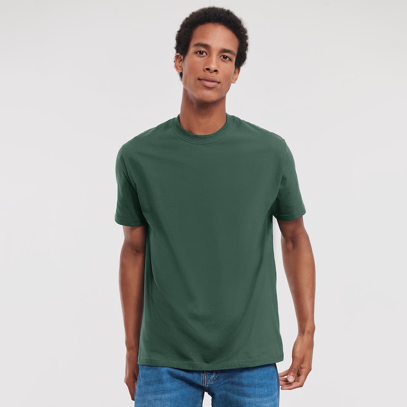 Russells klassiske t-skjorte Classic T-shirt 180M. Som vanlig med Russel tilbyr denne t-skjorten høy kvalitet til en attraktiv pris. T-skjortene tåler tørketrommel. Leveres individuelt pakket i plastpose.