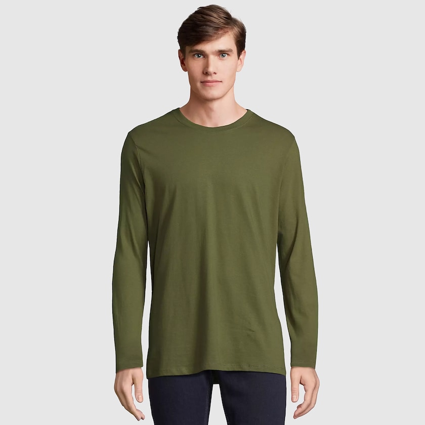 Langermet t-skjorte med trykk til herre. T-skjorten er laget av et kvalitetsstoff av 100% OEKO-TEX sertifisert bomull. Minstebestillingsantallet er bare 10 stk. Finnes også som damemodell.