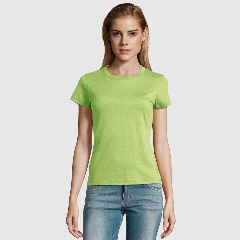T-skjorte til dame av topp kvalitet fra franske SOL's. T-skjorten er produsert av et kraftig bomullsstoff på 190 gram, av ÖKO-TEX sertifisert bomull. Velg mellom mange attraktive farger. Finnes også som herremodell.