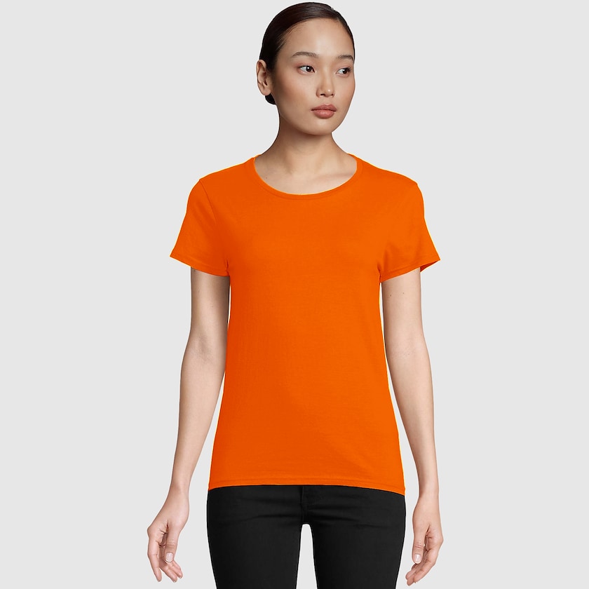 T-skjorte til dame i økologisk bomullsstoff. Kan kjøpes med trykk fra 10 stk. T-skjorten er laget av 175 grams stoff med 100% økologisk bomull. Stoffet er naturlig mykt. Finnes også som herremodell.