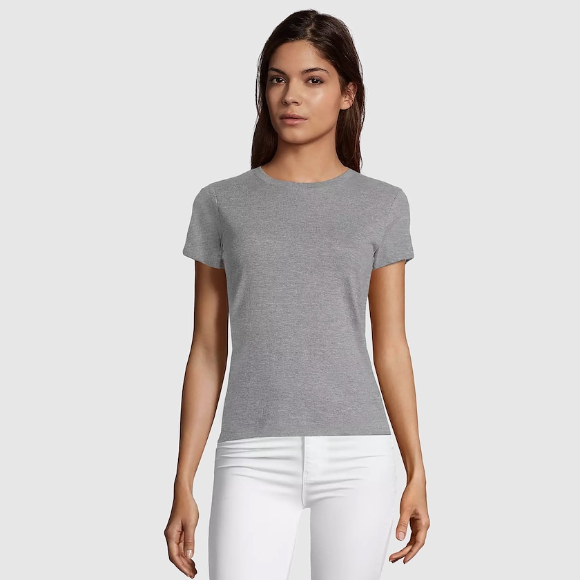 Figursydd t-skjorte til dame fra populære SOL´s. Stoffet har kvaliteten 150g/m², og er produsert av 100% ÖKO-TEX sertifisert bomull. Modellen er liten i størrelsene. Finnes også som herremodell.