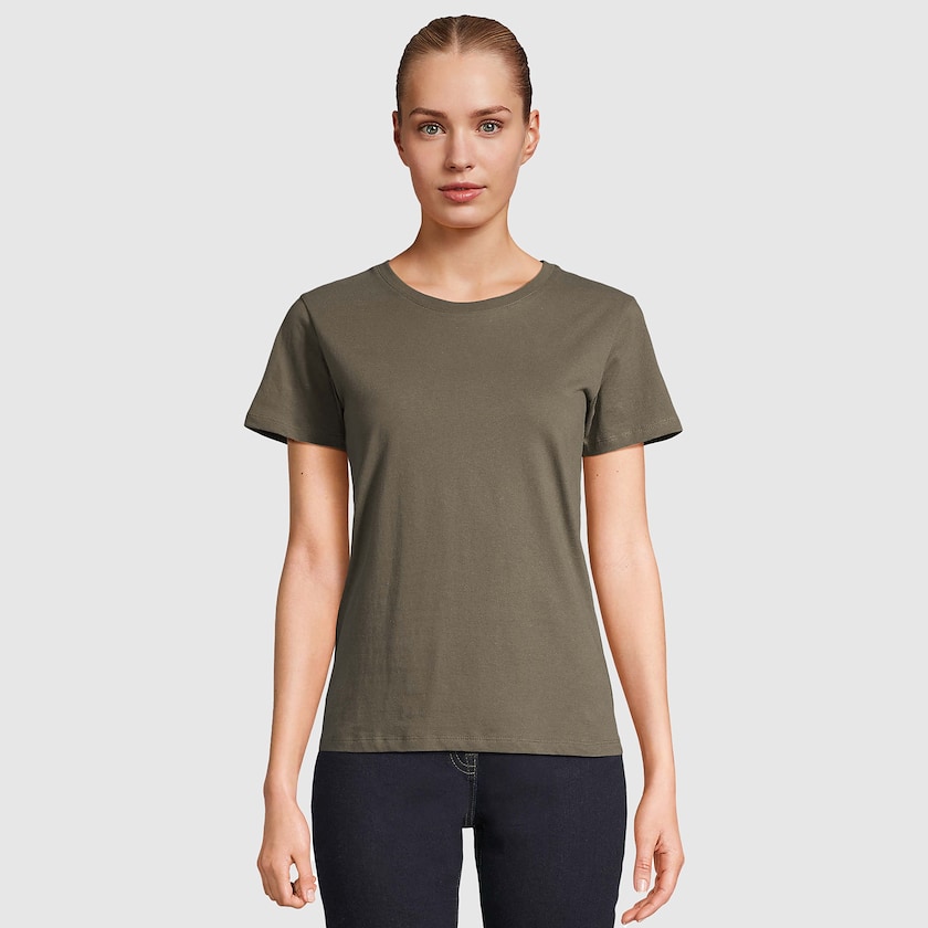 SOL's storfavoritt blant t-skjorter til dame T-skjorten er produsert av 150 grams stoff av 100% bomull . Stoffet er ÖKO-TEX sertifisert. Finnes også som herremodell.
