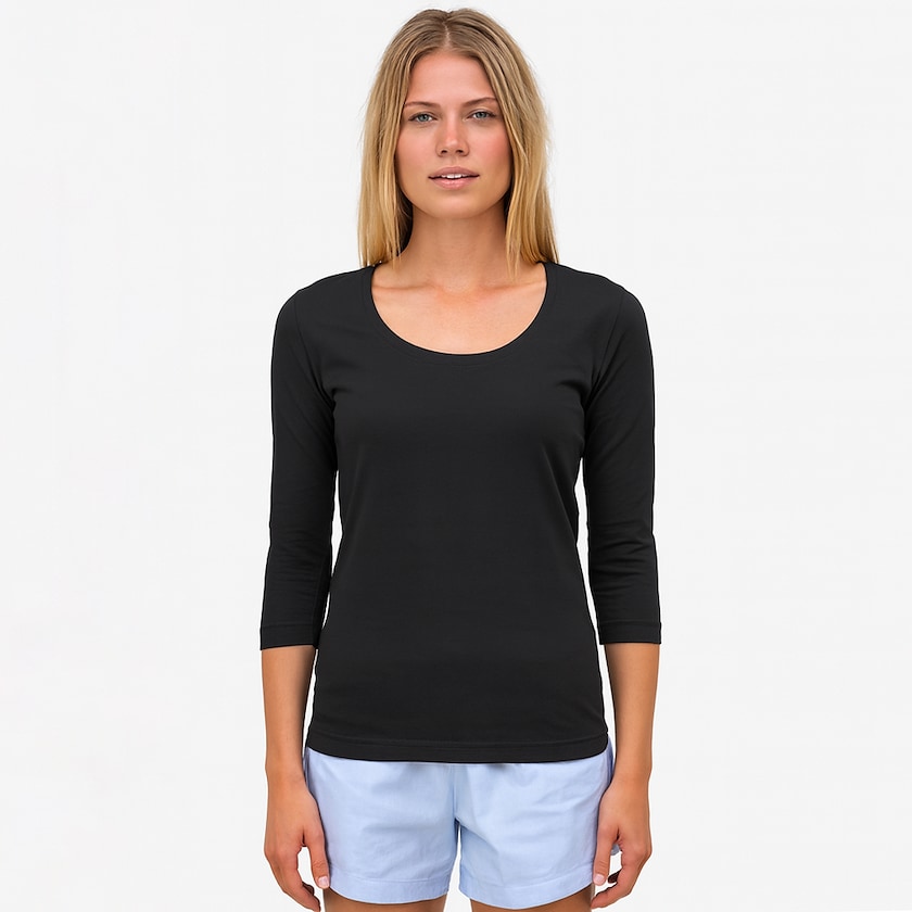 T-skjorte fra eksklusive Tee Jays med 3/4-dels arm og skjønn stretch. Laget med 90% bomull og 10% elastan. Elastanen er Full Feeder Elastan, som gir god stabilitet. Leveres individuelt pakket i plastpose.