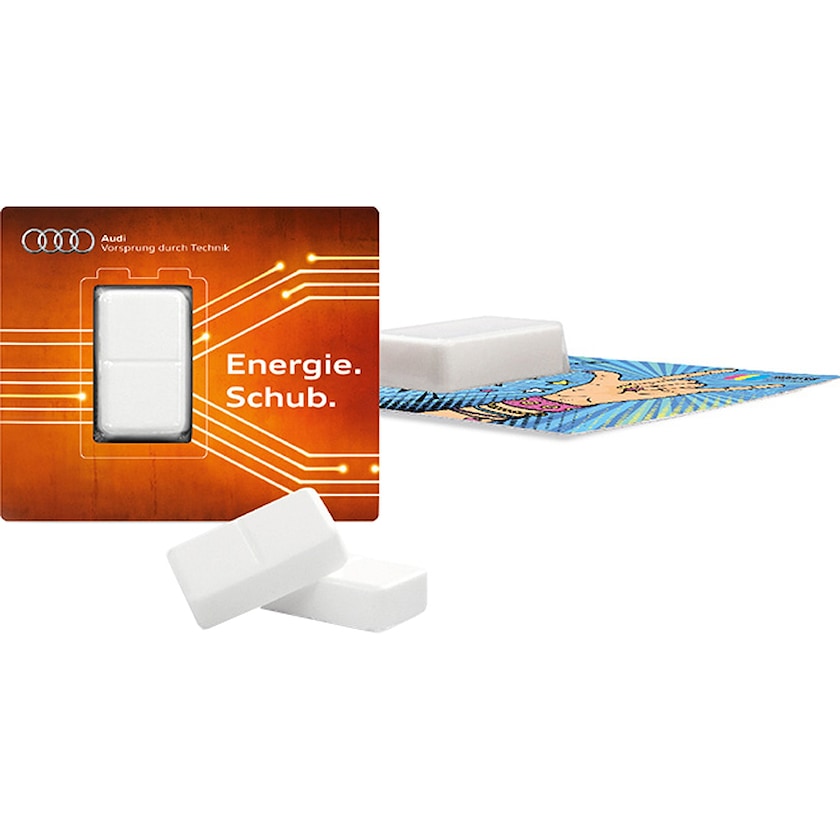 Et reklamekort fylt med energi. Kort med druesukker med mengder av C-vitamin. Kortet digitaltrykkes.