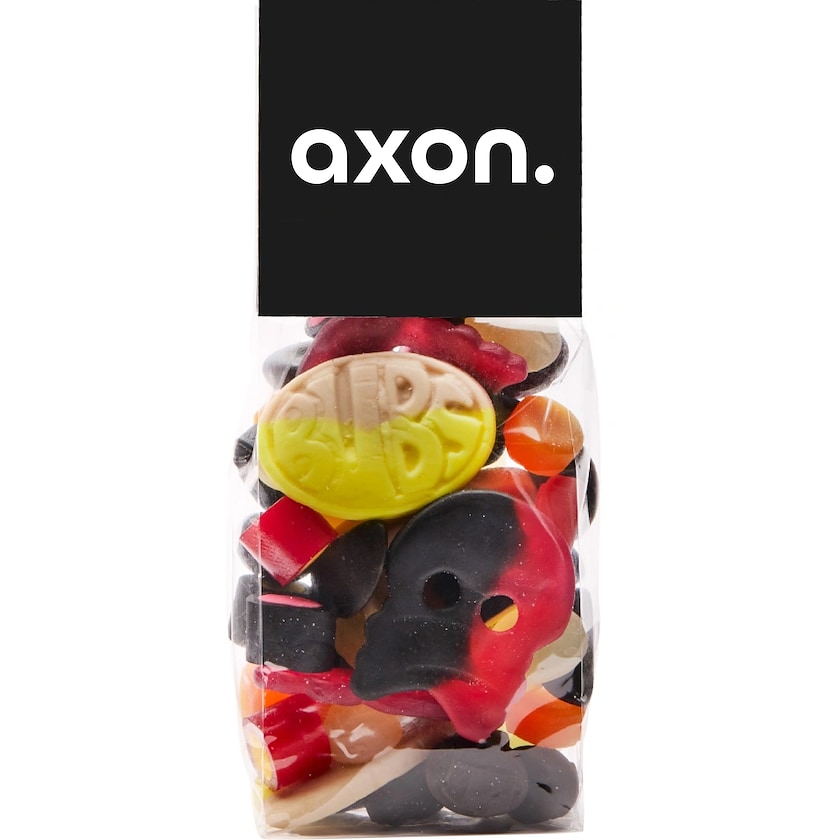 Luksuriøs godteripose fylt med valgfritt godteri. Bliss er tilgjengelig med et bredt utvalg av forskjellige godterityper. Godteriposen lukkes med et pappbanner som trykkes etter dine egne ønsker.