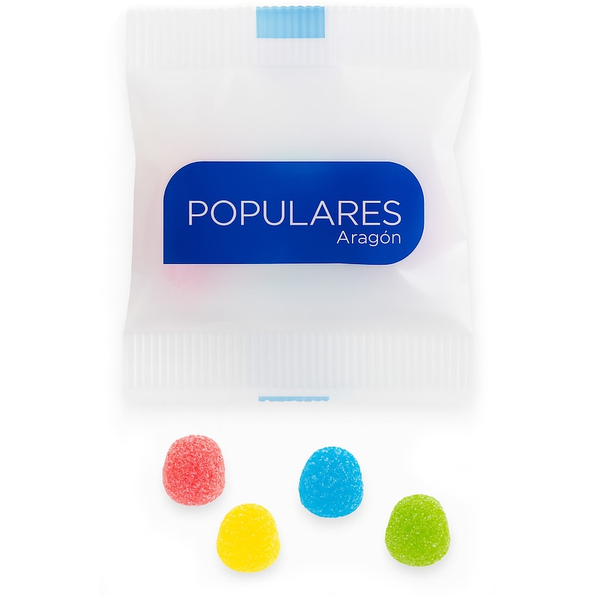 Liten pose gelégodteri med blandet smak. Posen trykkes helt etter egne ønsker. En trivelig godtepose med godt innhold.