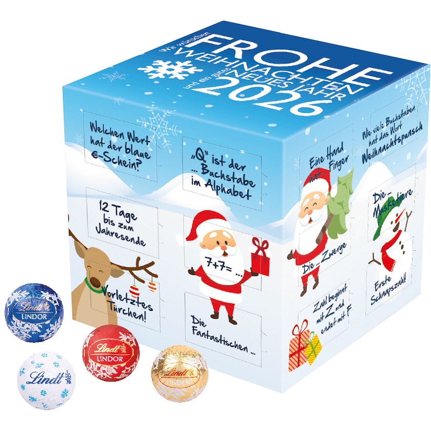 Kubeformet adventskalender bare i papir.. Fylt med utsøkte Lindt Lindor. Innholder ikke plast og er derfor et godt miljøvalg. Papiret kommer fra FSC-sertifisert skog.