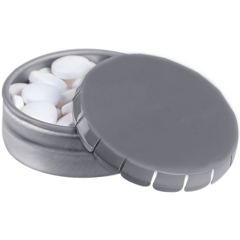 Den klassiske clic-clack-boksen fylt med lekre mintpastiller. Press på midten av lokket og boksen åpnes.