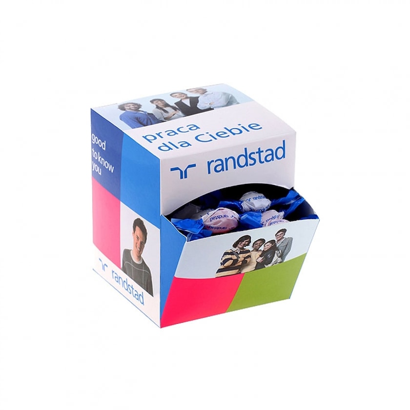 Liten godteriautomat i papp som du designer helt selv. Rommer ca 200 gram godteri.
