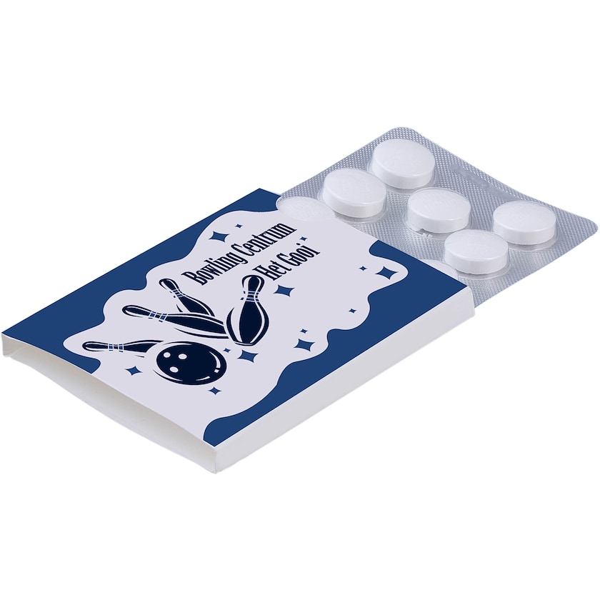 10 stk sukkerfrie mintpastiller i fin forpakning og omslag i digitaltrykk.