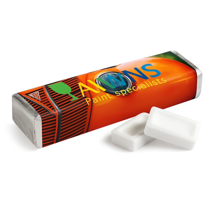 Fantastiske rimelige mintpastiller i aluminiumsfolie. Trykket gjøres på en pappomslag som går rundt den innerste forpakningen. Mintpastillene er sukkerfrie.