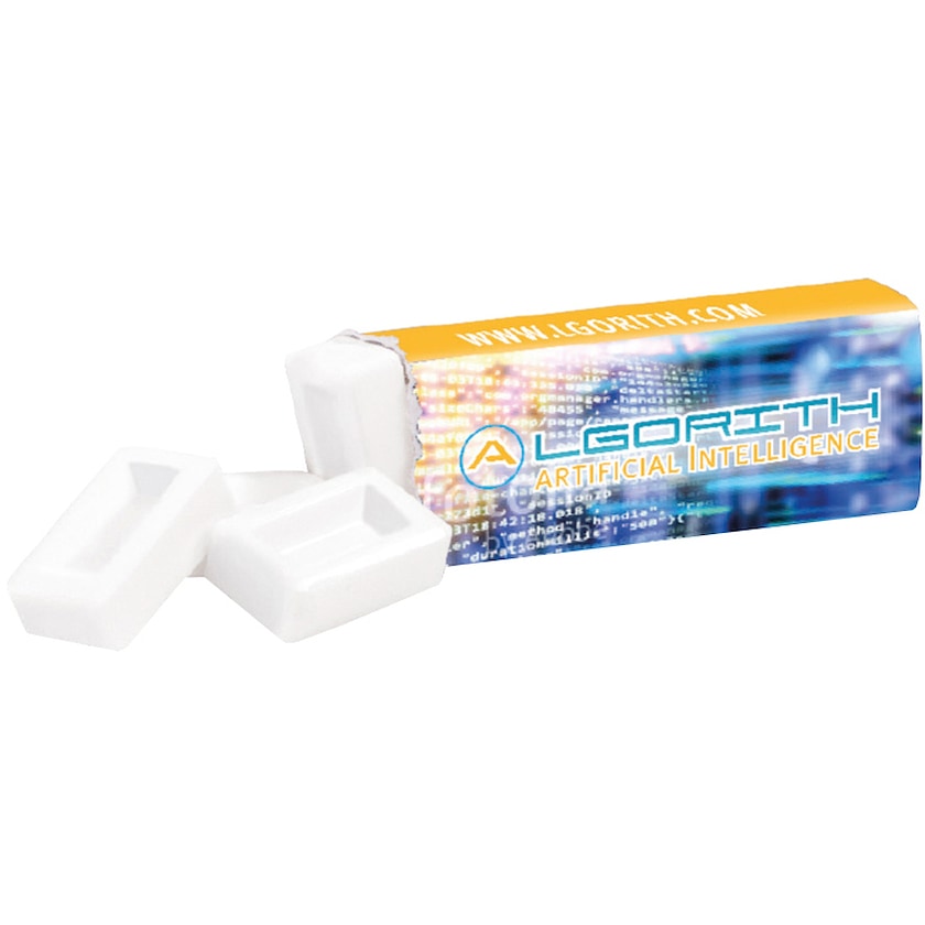 Veganske mintpastiller i innpakking med eget trykk. Innpakkingen har 12 stk tabletter i seg og trykkes helt etter dine ønsker.
